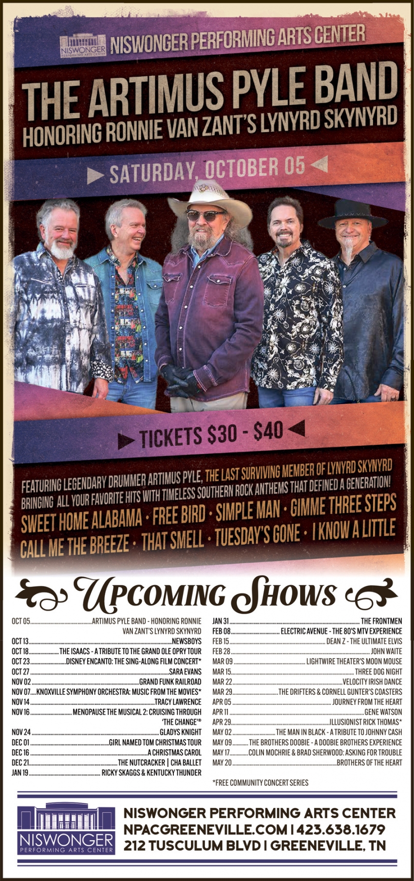 Sep 25, 2024. NPAC Niswonger Performing Arts Center Concerts Ads from The Greeneville Sun