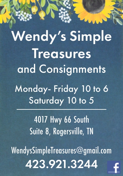 Ads for Wendy's Simple Treasures and Consignments in Rogersville, TN