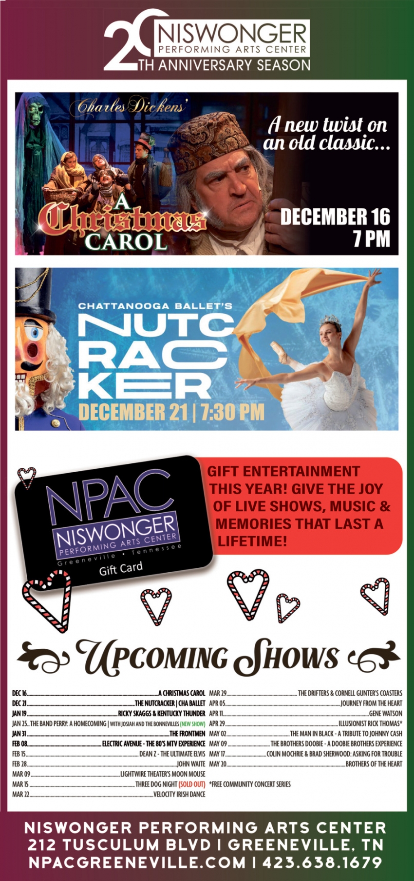 Ads for NPAC Niswonger Performing Arts Center in Greeneville, TN