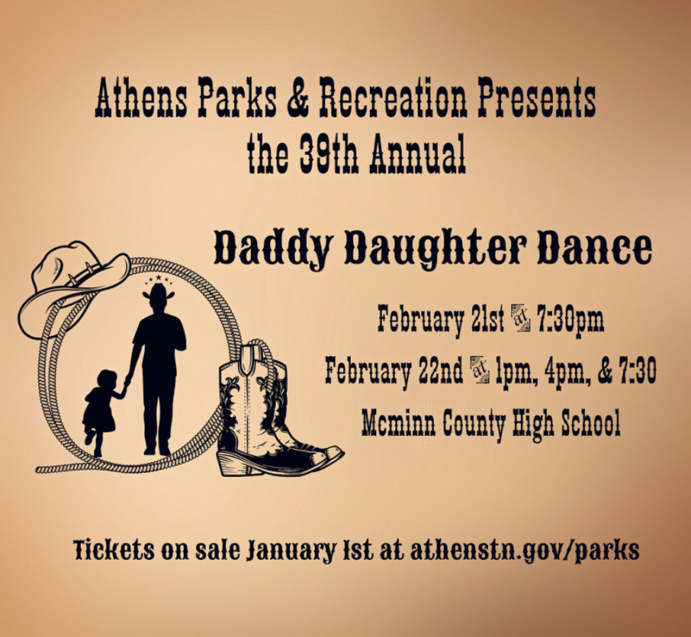Ads for Daddy Daughter Dance (February 21 & 22, 2024) in Athens, TN
