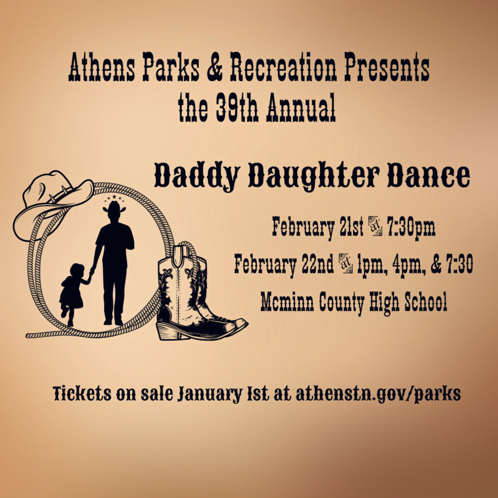 Ads for Daddy Daughter Dance (February 21 & 22, 2024) in Athens, TN