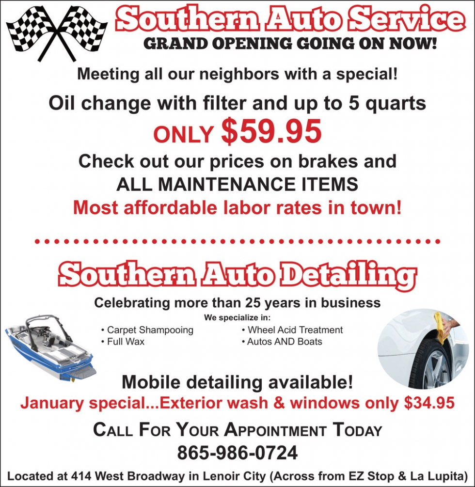 Jan 15, 2025. Southern Auto Service - Southern Auto Detailing Auto Services Ads from News-Herald