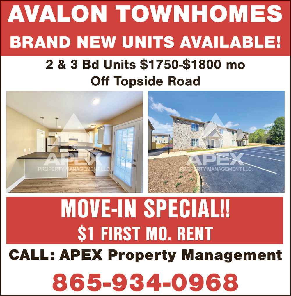 865-934-09681301 Avalon DrLouisville, TN 37777(Apex Property Management)