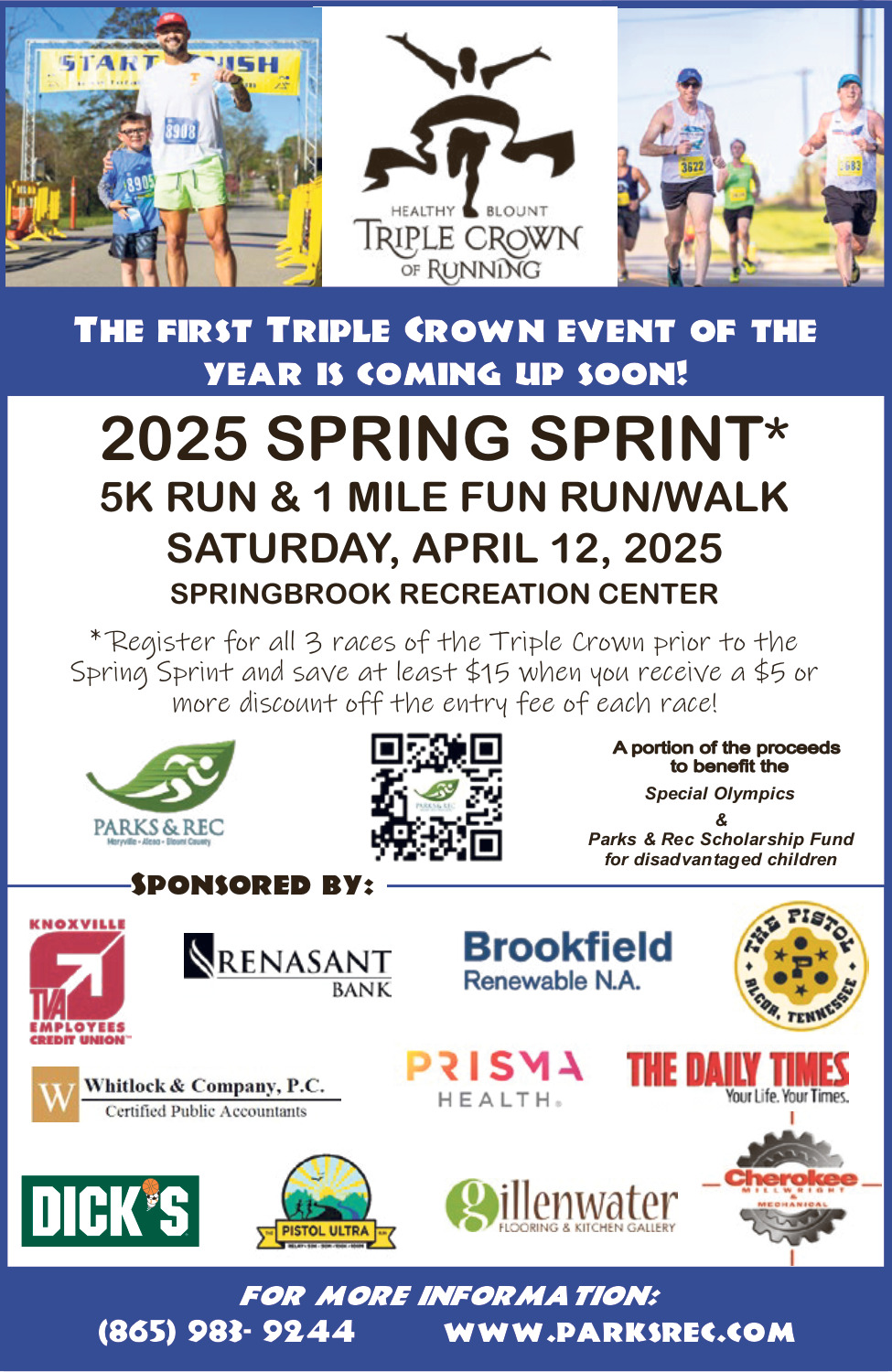 Mar 14, 2025. 2025 Spring Sprint 5K Run & 1 Mile Fun Run/Walk Events Ads from The Daily Times