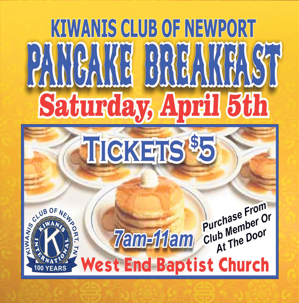Ads for Kiwanis Club of Newport Pancake Breakfast (April 5, 2025) in Newport, TN