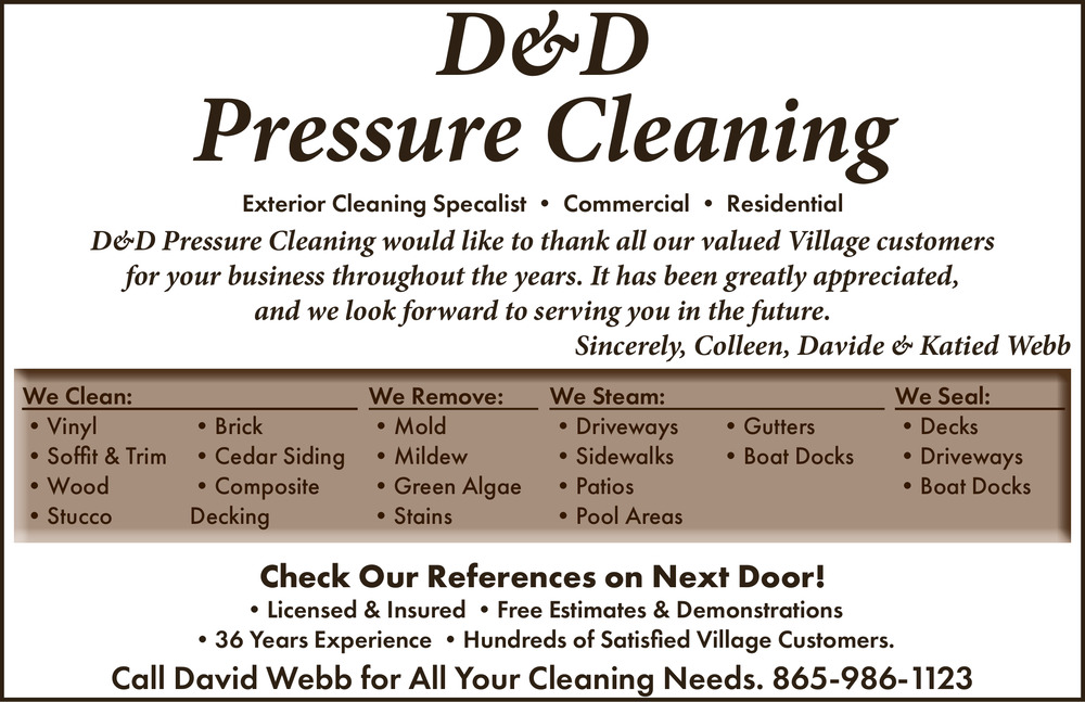 Ads for D&D Pressure Cleaning in Lenoir City, TN
