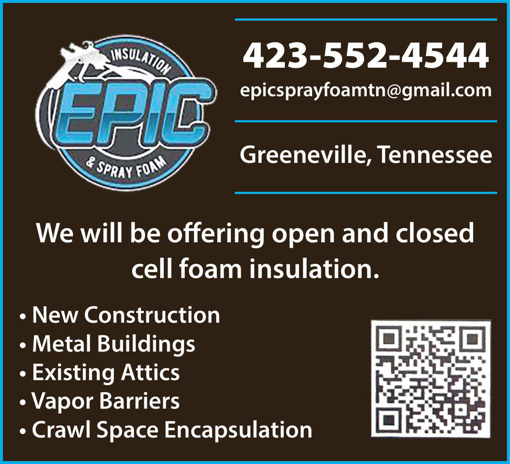 Jun 27, 2025. Epic Insulation & Spray Foam Home Improvements Ads from The Greeneville Sun