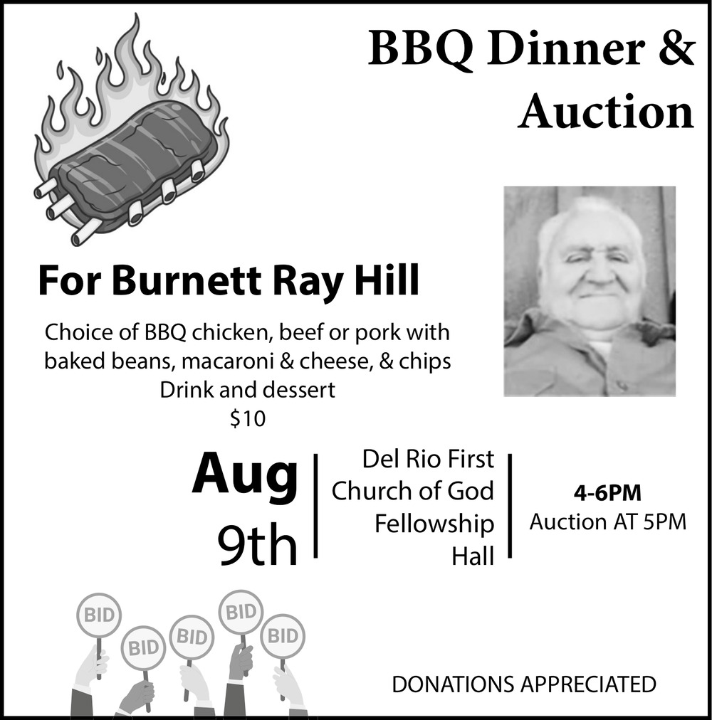 Ads for BBQ Dinner & Auction (August 9, 2025) in Del Rio, TN
