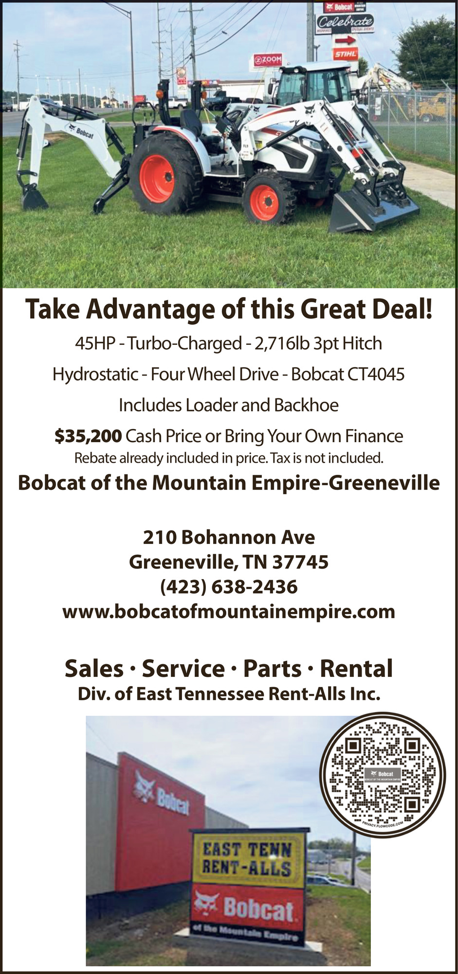 423-638-2436210 Bohannon AveGreeneville, TN 37745(Bobcat of The Mountain Empire-Greeneville)