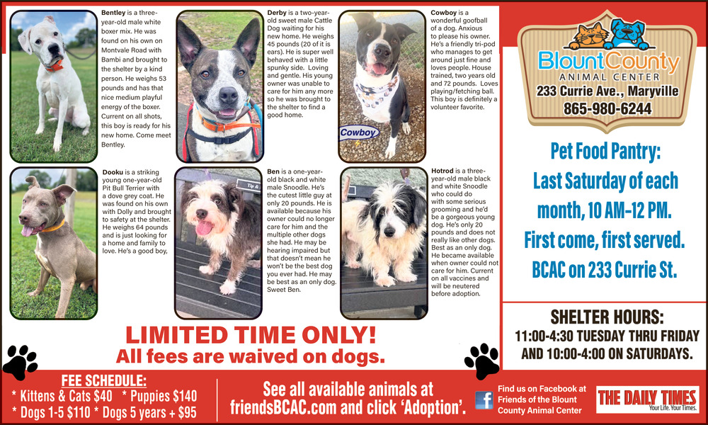 865-980-6244233 Currie AveMaryville, TN 37804(Animal Center)