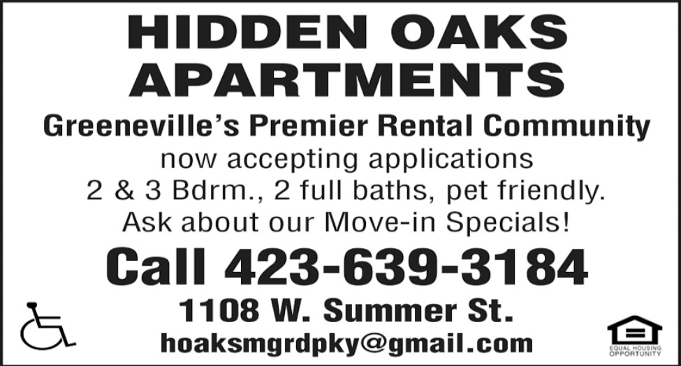 Aug 30, 2025. Hidden Oaks Apartments Real Estate Ads from The Greeneville Sun