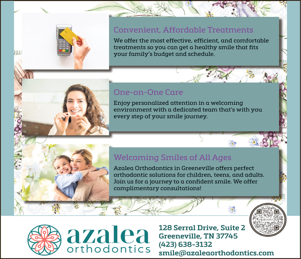 423-638-3132128 Serral Dr #2Greeneville, TN 37745(Azalea Orthodontics)