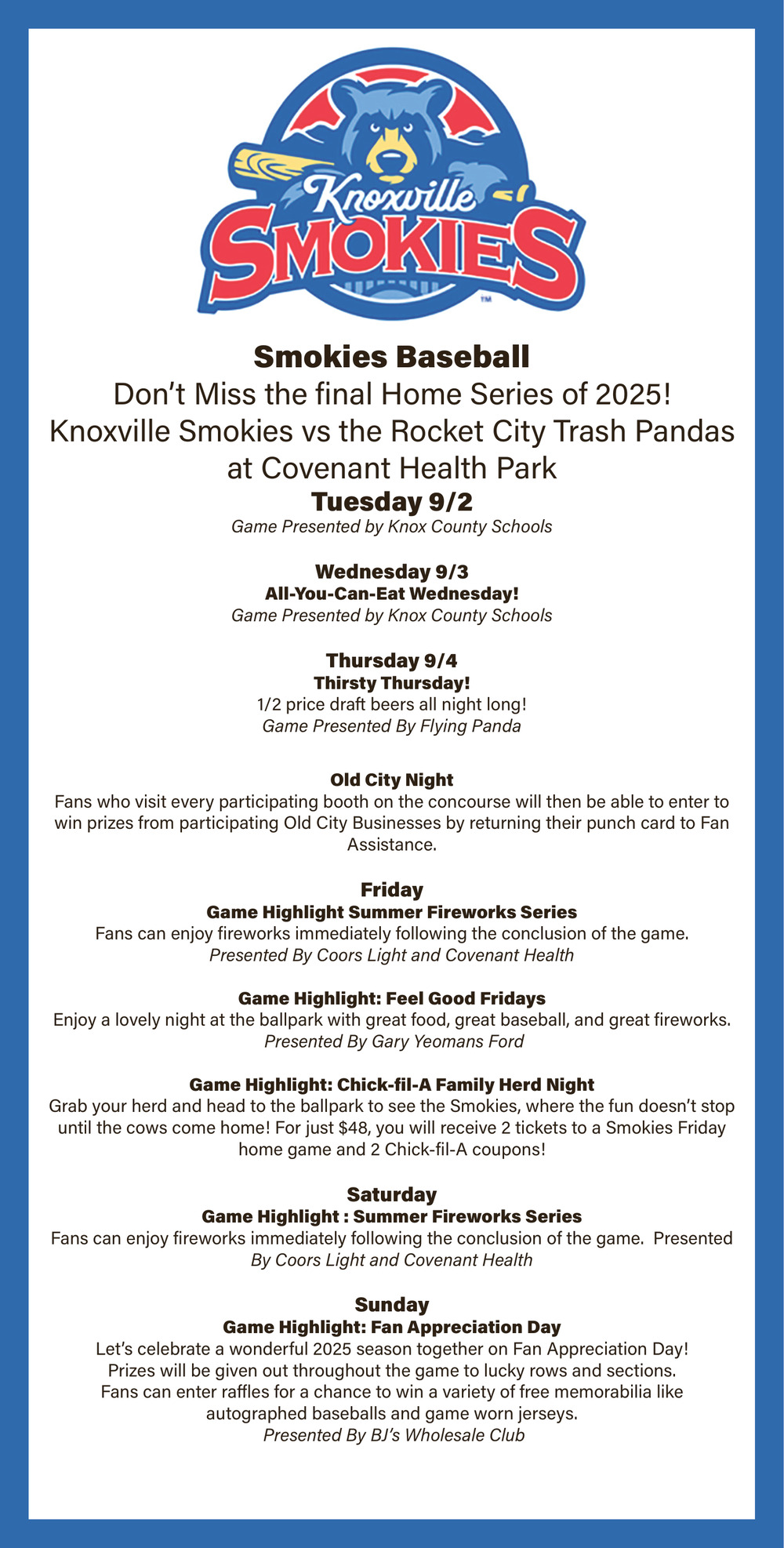 Aug 29, 2025. Knoxville Smokies Sporting Events Ads from The Daily Times