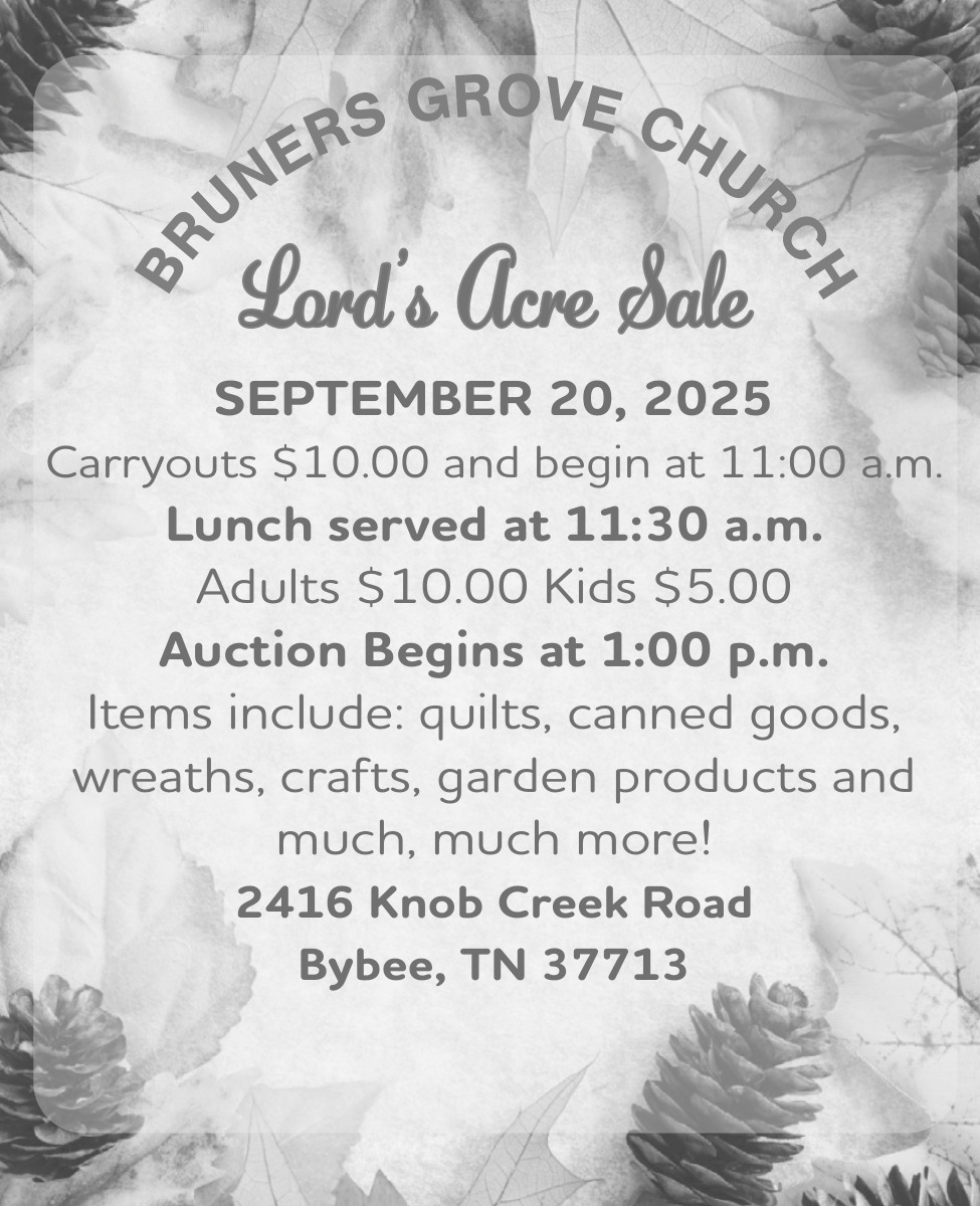 Sep 09, 2025. Bruners Grove Church Church Ads from The Newport Plain Talk