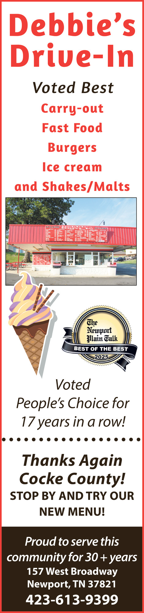Ads for Debbie's Drive-In in Newport, TN