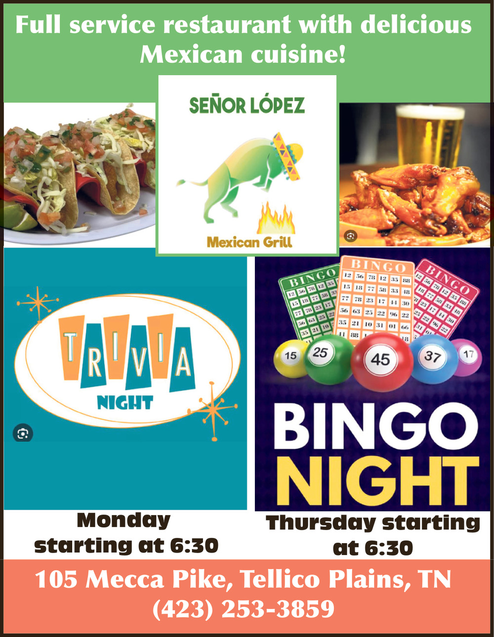Ads for Señor Lopez Mexican Grill in Tellico Plains, TN