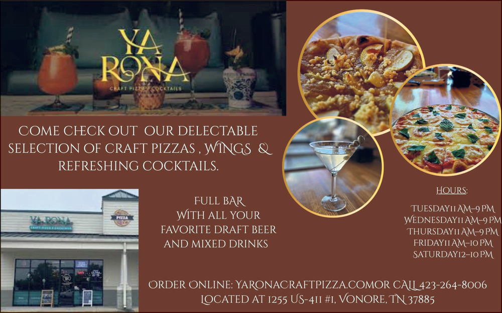 Ads for Ya Rona Craft Pizza and Cocktails in Vonore, TN