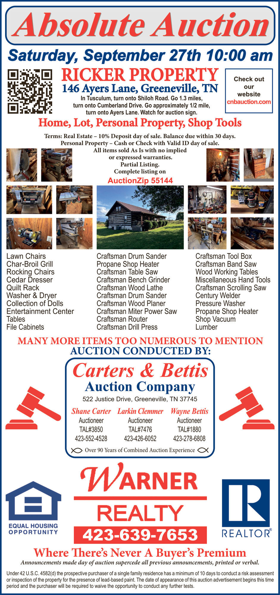 522 Justice DriveGreeneville, TN 37745(Carters & Bettis Auction Company)
