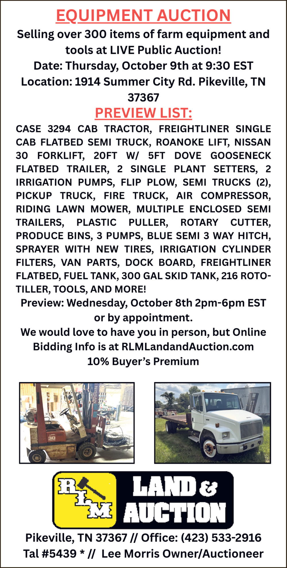 Sep 30, 2025. RLM Land and Auction Livestock Ads from The Rhea Herald-News