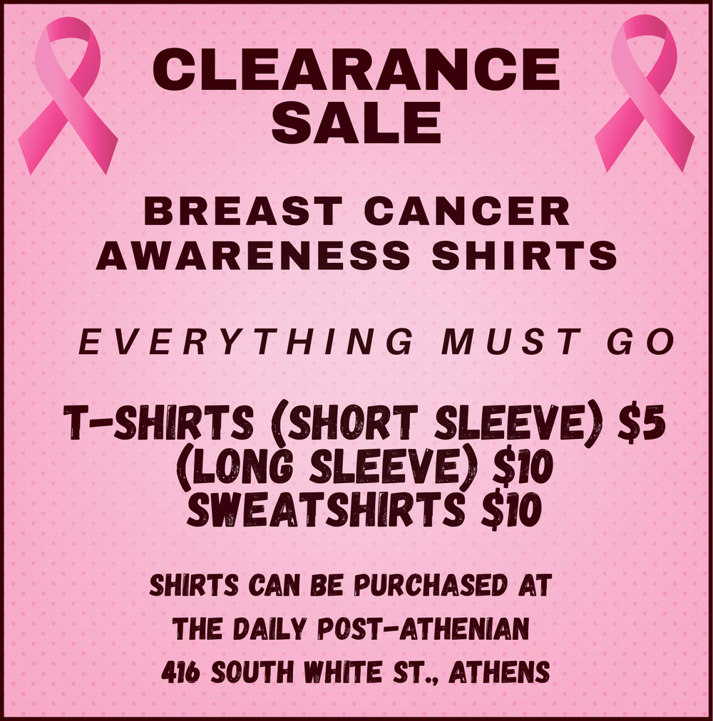 Oct 03, 2025. Breast Cancer Awareness Shirts Clearance Sale at the Daily Post-Athenian General Ads from The Daily Post-Athenian