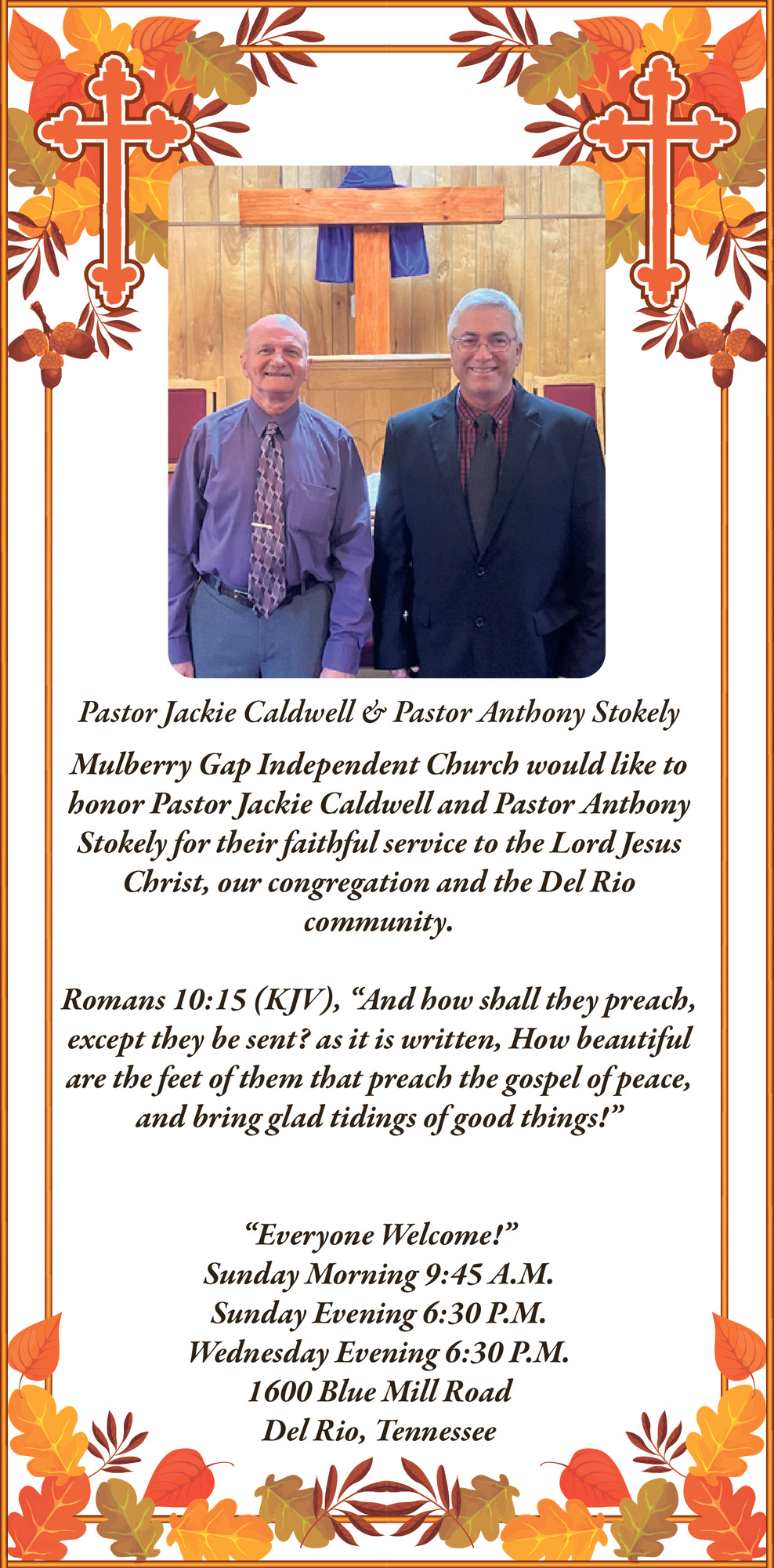 Oct 21, 2025. Mulberry Gap United Methodist Church Church Ads from The Newport Plain Talk