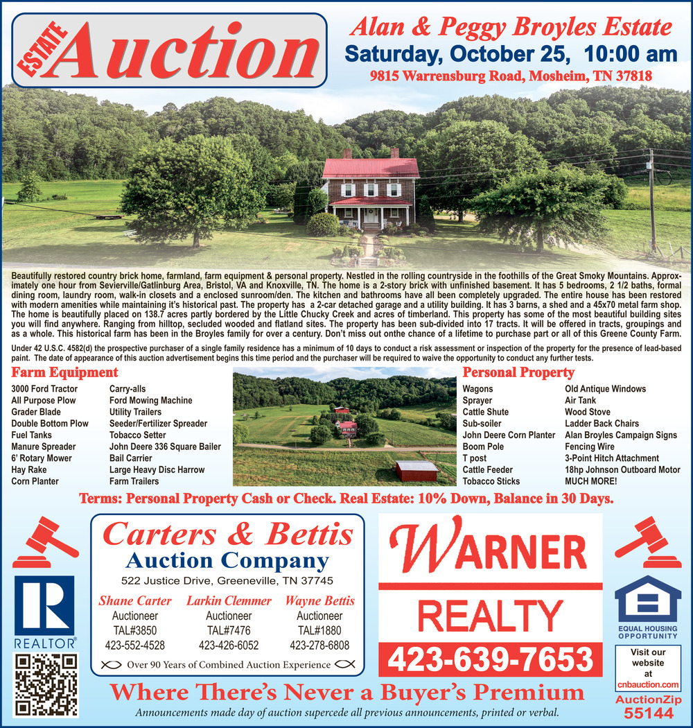 522 Justice DriveGreeneville, TN 37745(Carters & Bettis Auction Company)