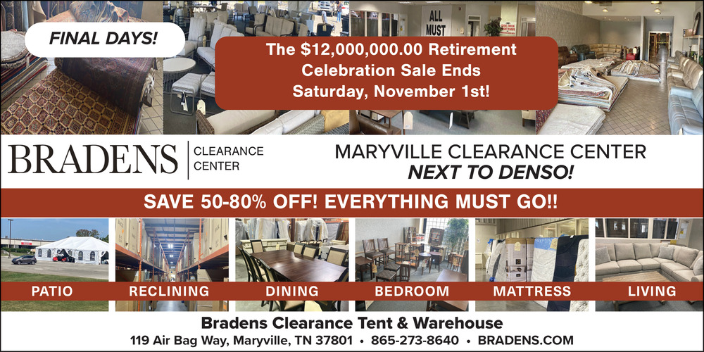 865-273-8640119 Air Bag WayMaryville, TN 37801(Bradens Clearance Tent & Warehouse)