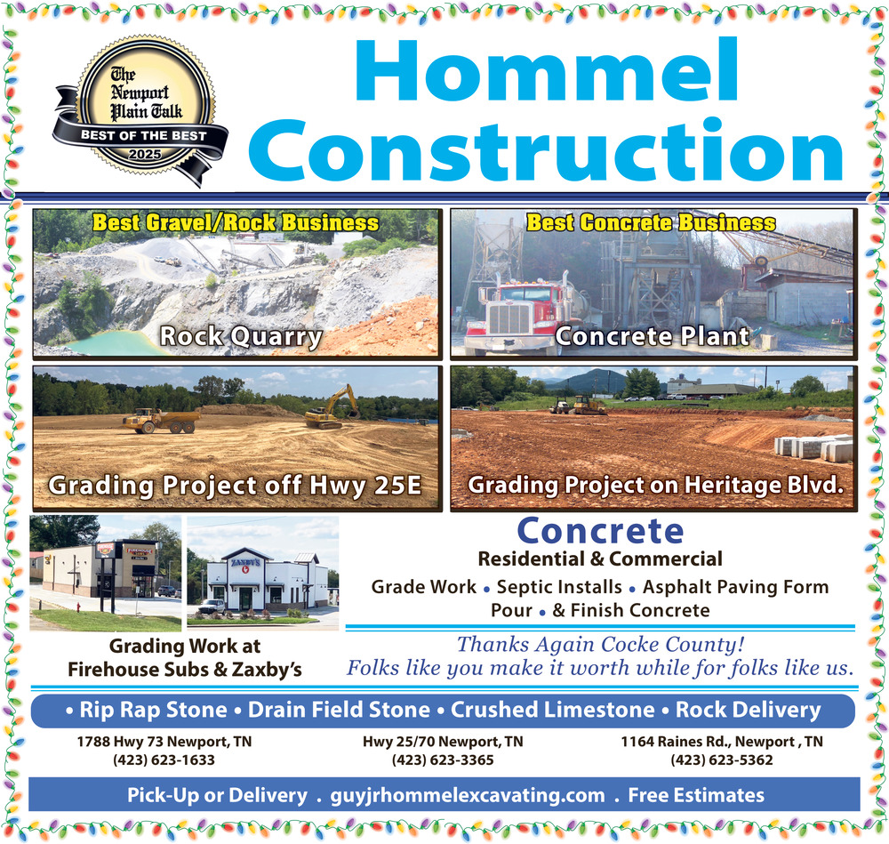 Nov 26, 2025. Hommel Construction Construction Ads from The Newport Plain Talk
