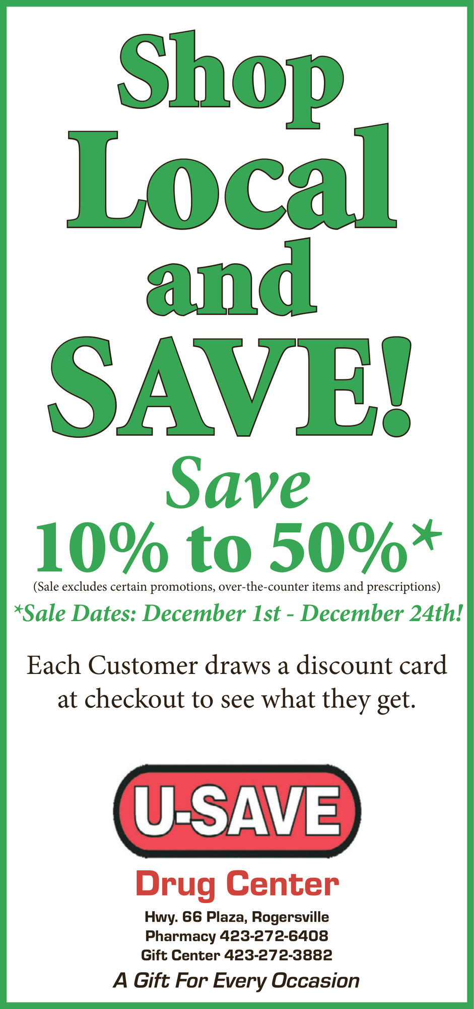 Nov 26, 2025. U-Save Drug Center Pharmacy Ads from The Rogersville Review