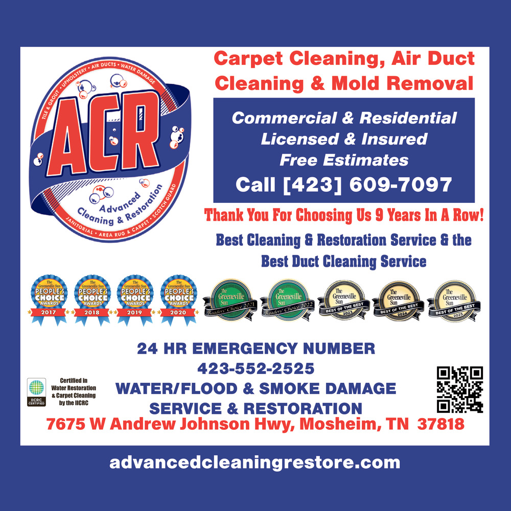 Nov 29, 2025. ACR - Advanced Cleaning & Restoration Cleaning Ads from The Greeneville Sun