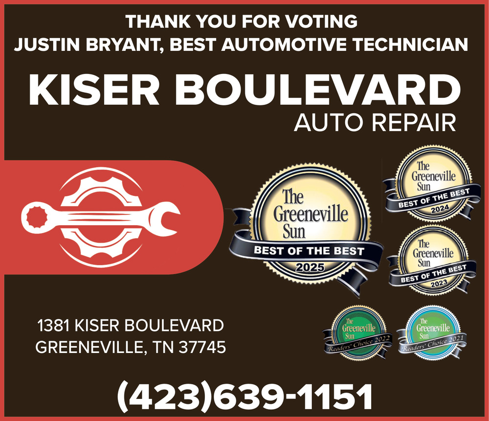 Nov 29, 2025. Kiser Boulevard Auto Repair Auto Services Ads from The Greeneville Sun