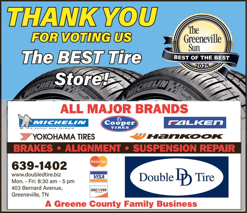 Nov 29, 2025. Double D Tire Auto Services Ads from The Greeneville Sun