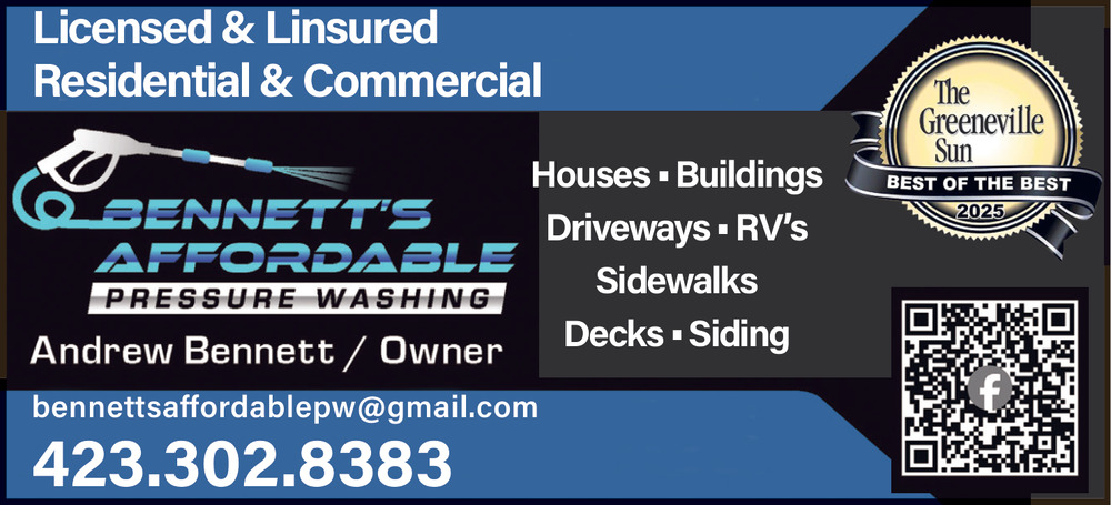 Nov 29, 2025. Bennett's Affordable Pressure Washing Cleaning Ads from The Greeneville Sun