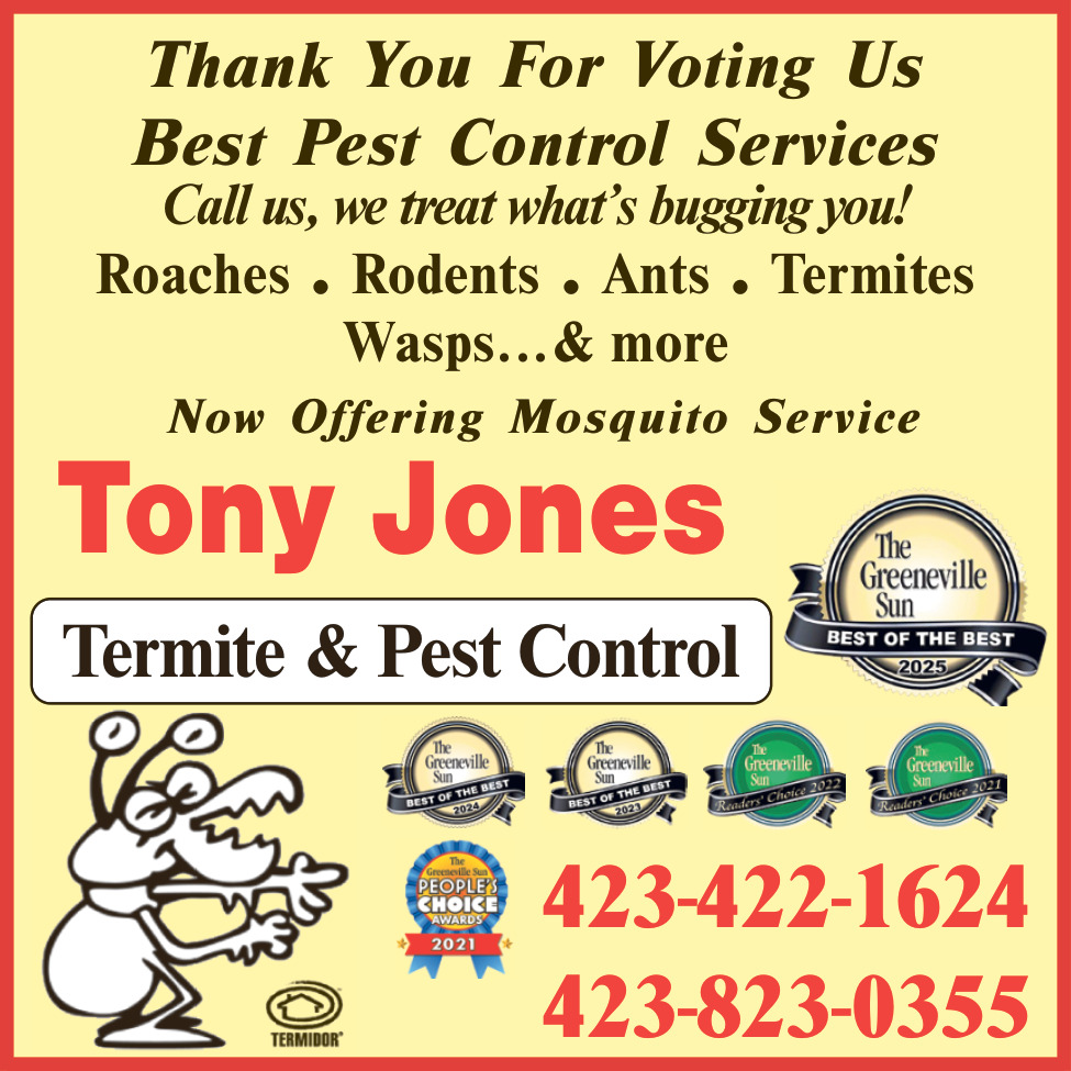 Nov 29, 2025. Tony Jones Termite & Pest Control Pest Control Ads from The Greeneville Sun