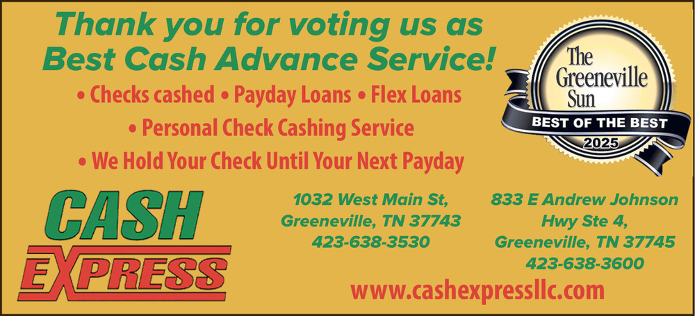 Nov 29, 2025. Cash Express Financial Ads from The Greeneville Sun