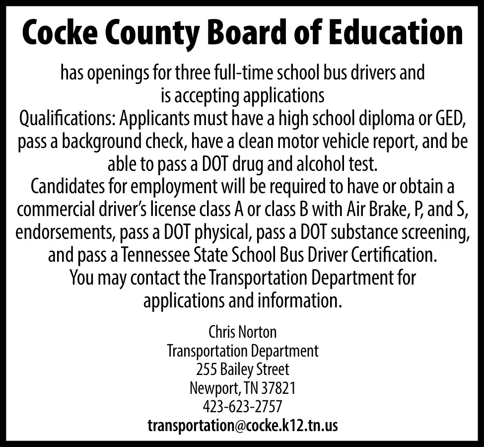 Dec 03, 2025. Cocke County Board of Education Jobs Ads from The Newport Plain Talk