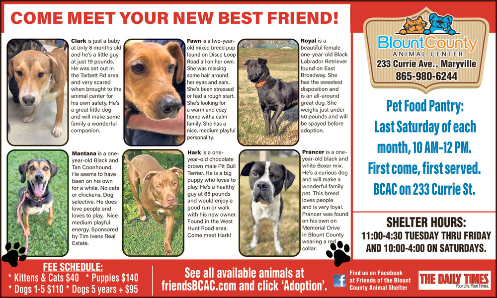865-980-6244233 Currie AveMaryville, TN 37804(Animal Center)
