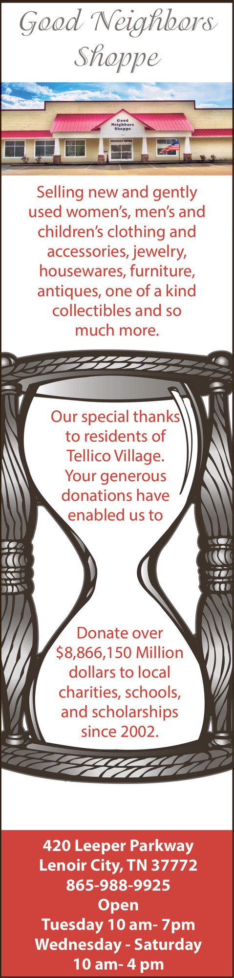 865-988-9925420 Leeper PkwyLenoir City, TN 37772(Shop)