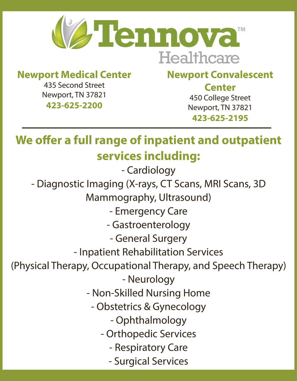 423-625-2195450 College StNewport, TN 37821(Newport Convalescent Center)