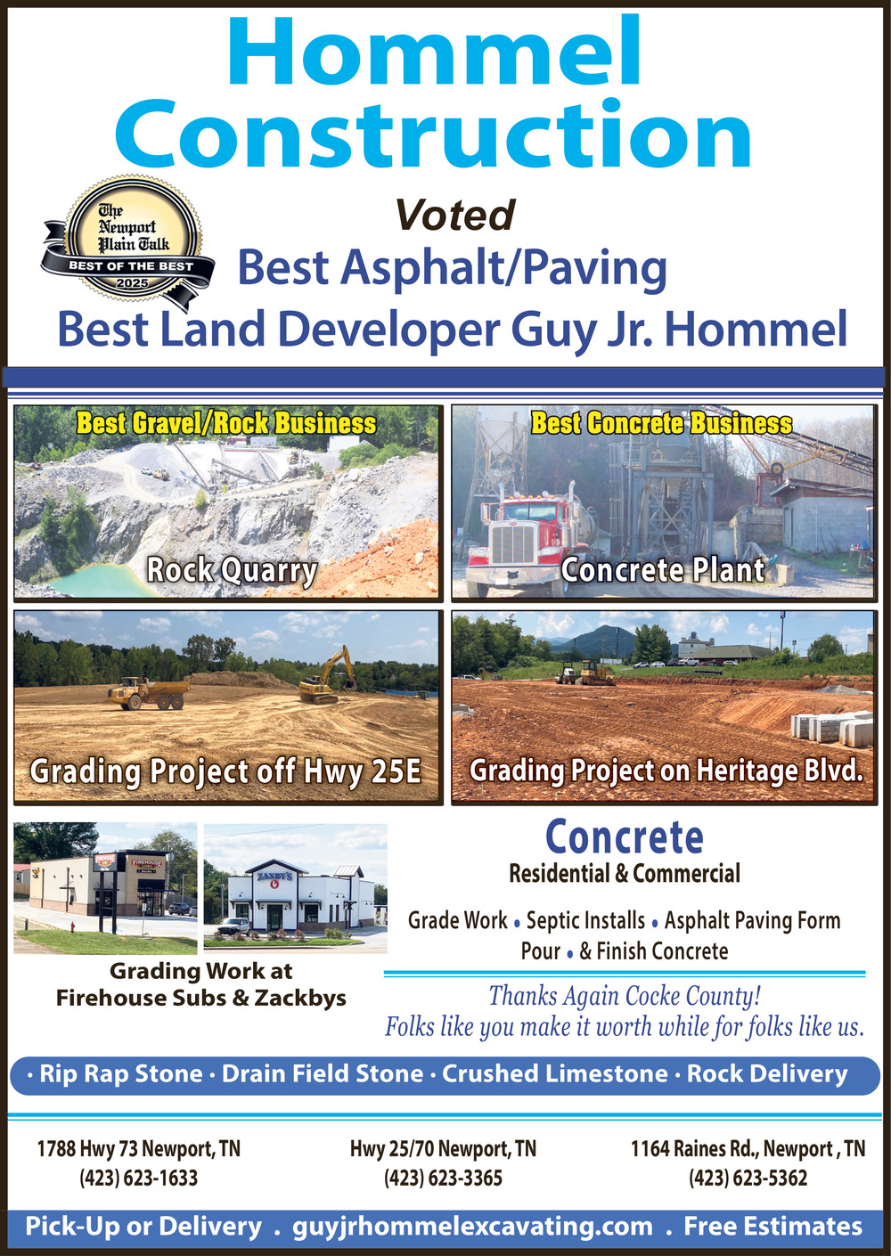 Ads for Hommel Construction in Newport, TN