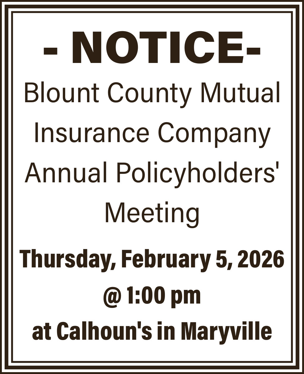 Feb 02, 2026. Blount County Mutual Insurance Company Government Ads from The Daily Times