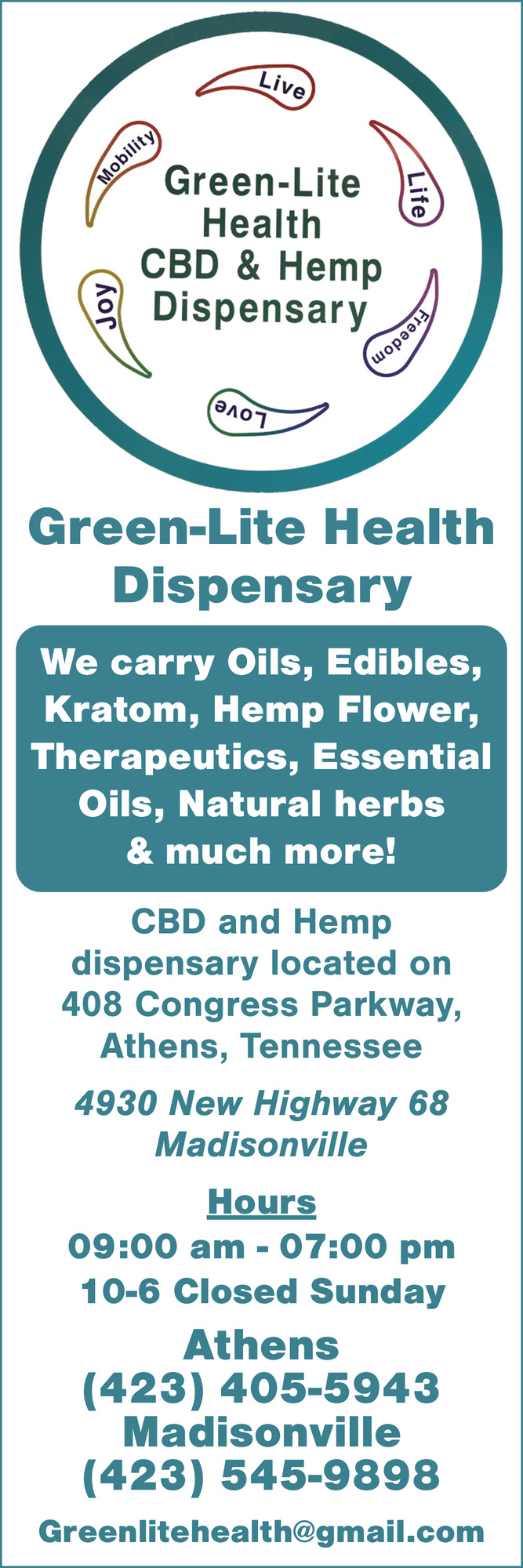Ads for Green-Lite Health Dispensary in Athens, TN