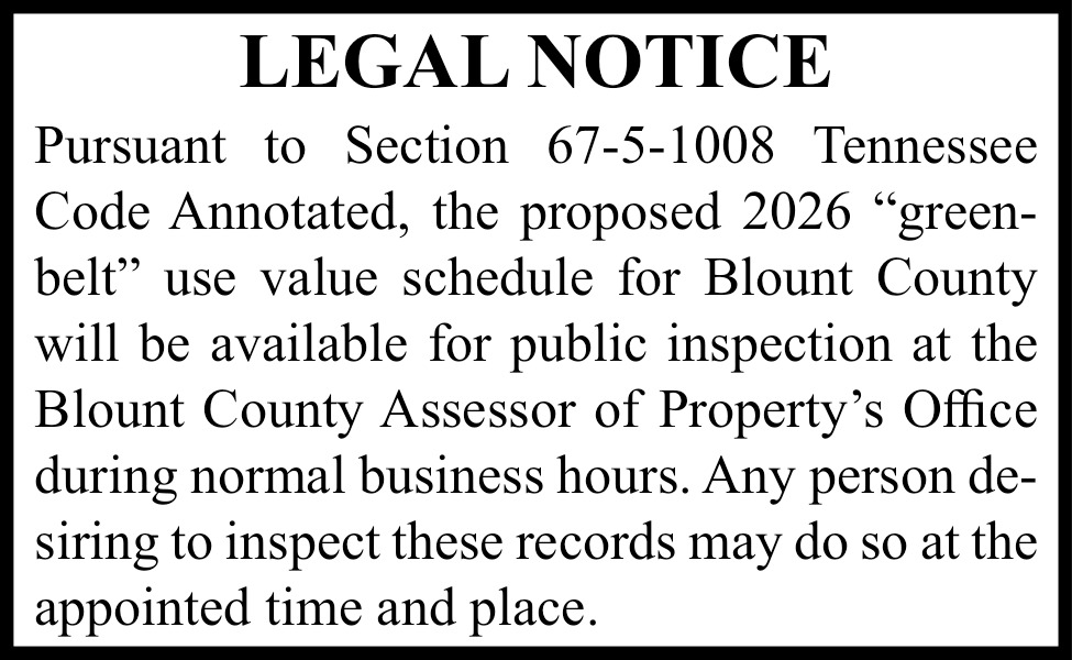Feb 21, 2026. Blount County Assesor of Property's Office Public Notice Ads from The Daily Times