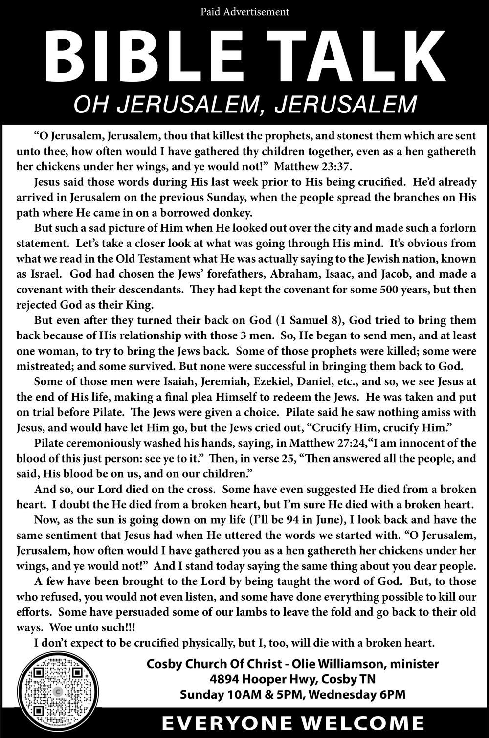 865-712-78404894 Hooper HwyCosby, TN 37722(Church)