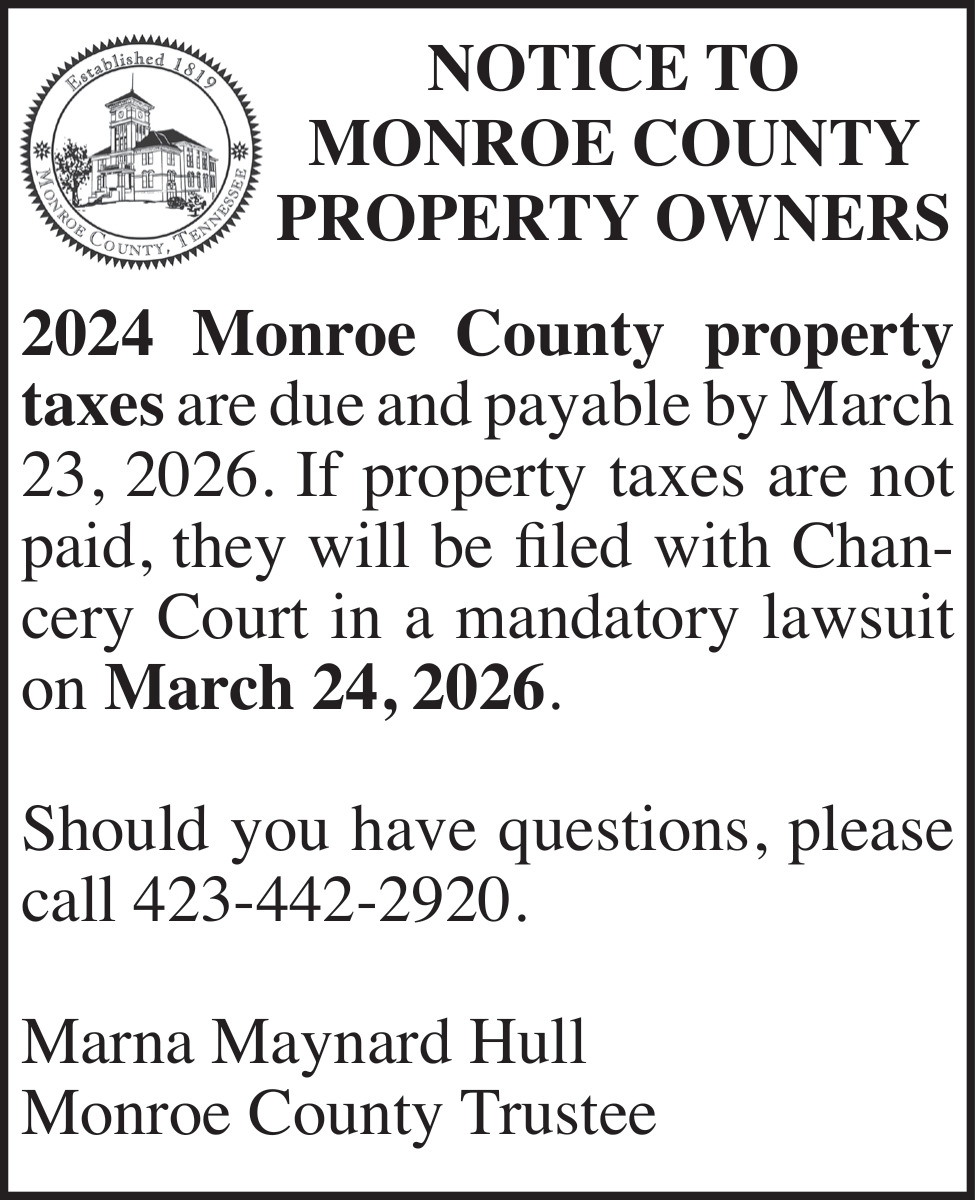 Mar 11, 2026. Monroe County Public Notice Ads from The Advocate & Democrat