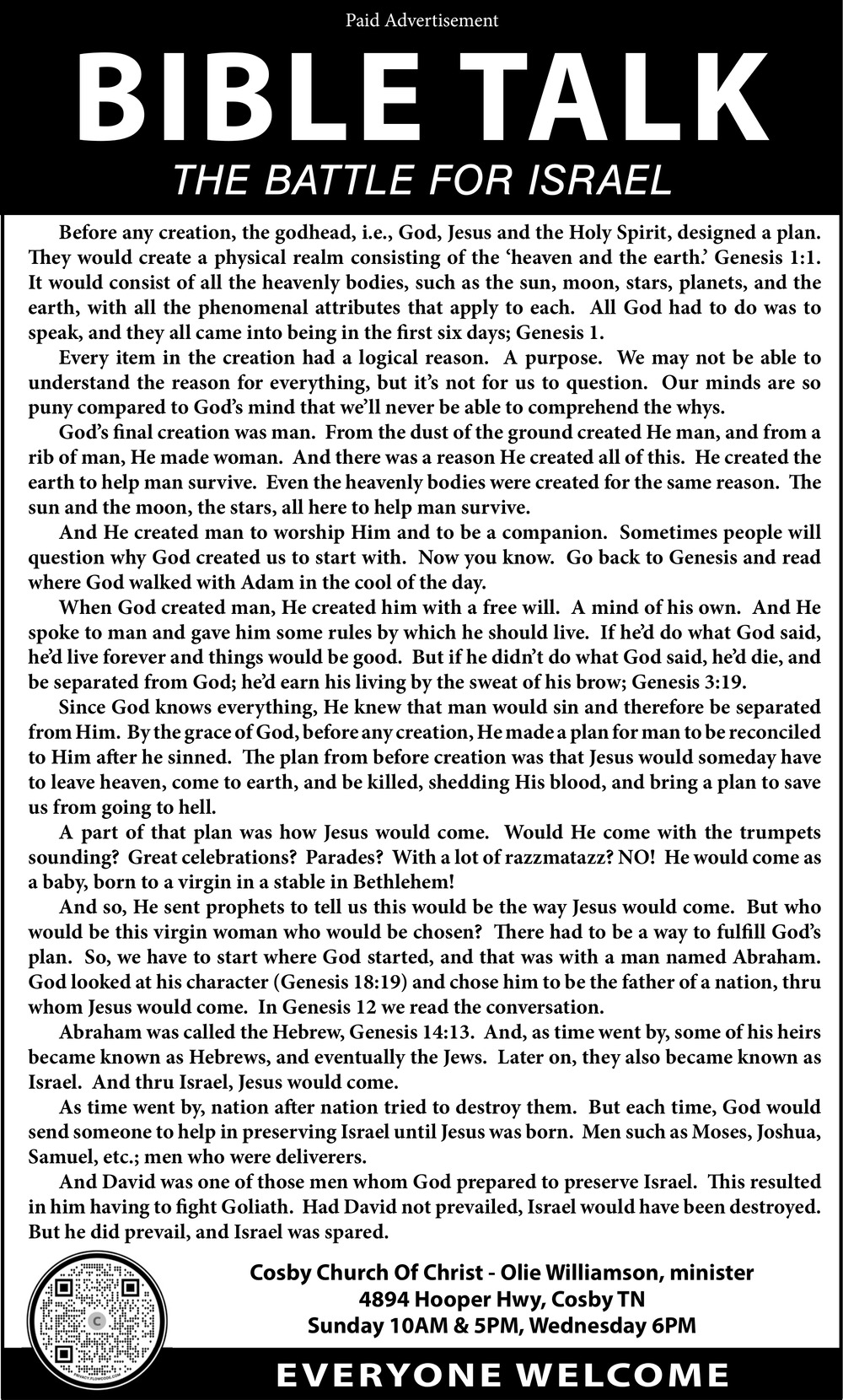 Ads for Cosby Church of Christ in Cosby, TN