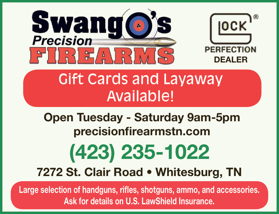 Apr 08, 2026. Swango's Precision Firearms Guns Ads from The Greeneville Sun