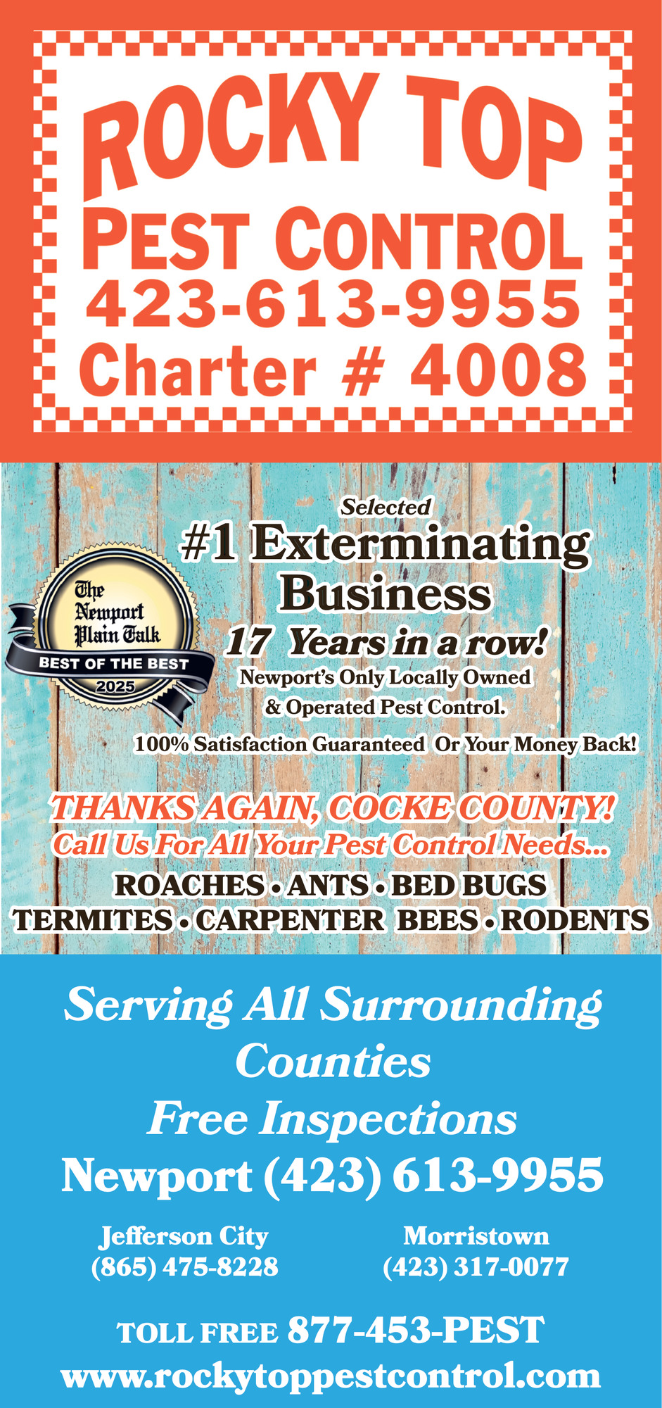 Apr 08, 2026. Rocky Top Pest Control Pest Control Ads from The Newport Plain Talk